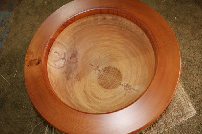 また穴の中は芯割れを防ぎ、補強、水漏れ防止ために大小数個の埋め木(下の写真参照)をしてあります。